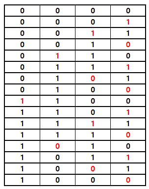 경우의 수를 줄이려면 변경되는 bit의 개수를 줄어야 한다. 그래서 변경되는 bit의 개수가 1개만 되도록 하는 코드가 필요하다. 그런 코드가 바로 Gray Code이다. 아래 Table은 4-bit짜리 여러 Gray code 중 reflected binary Gray code를 나타냈다.