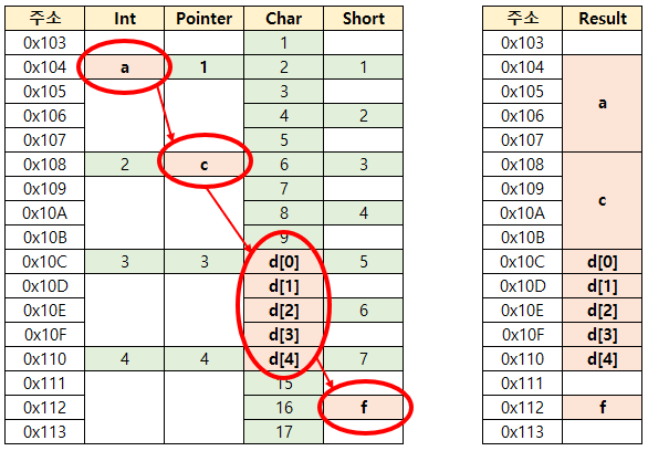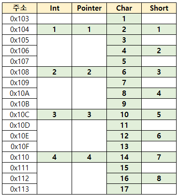 위의 그림과 같이 배치를 해보면 각 type 별로 시작하는 주소는 각 data type 크기의 배수임을 알 수 있다.