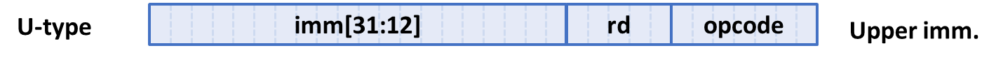이 명령어를 사용하면 상위 20-bit을 설정할 수 있다. 이와 같이 20-bit의 imm을 사용할 수 있게 하는 명령어 타입을 U-type으로 지정하여 명령어를 만들었다.