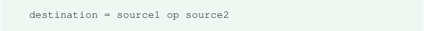 그리고 아래와 같이 각 동작들은 1개의 destination register와 2개의 source register로 구성되어 있다.