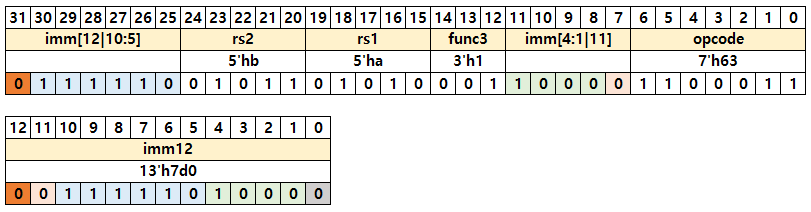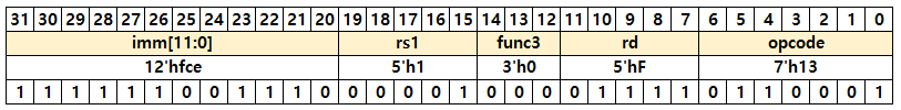 // imm : 12'hFCE, 12'b1111 1100 1110 -> +50의 2's complement 표현.