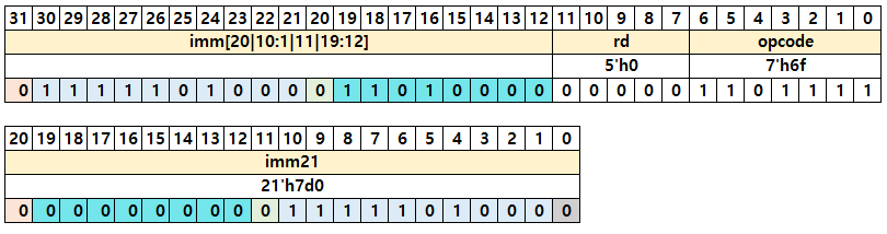 // imm : 20'd2000, 20'h7D0, 20'b0000_0111_1101_0000